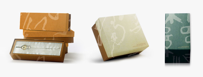 (1)單個文字的創意變形編排設計。對單個(或少量)文字在整體包裝版面中進行變形設計。如下圖所示:系列包裝。其中利用自由書法字形的解構造型設計分散性地排列在整個包裝上,講究文字的編排布局效果,呈現出別具一格。