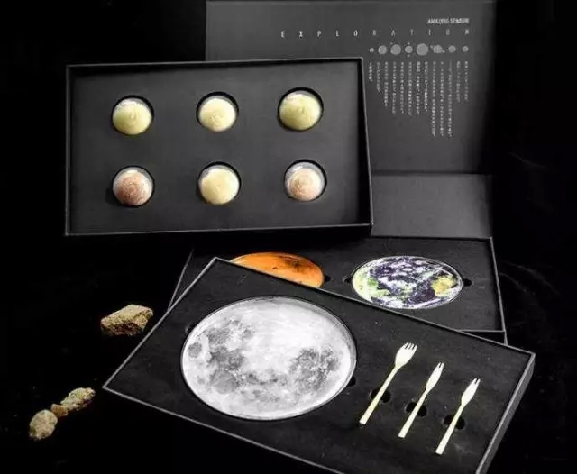 也是星空主題,月餅設計有點像之前大火的星球棒棒糖。個人認為最美的是月亮盤。