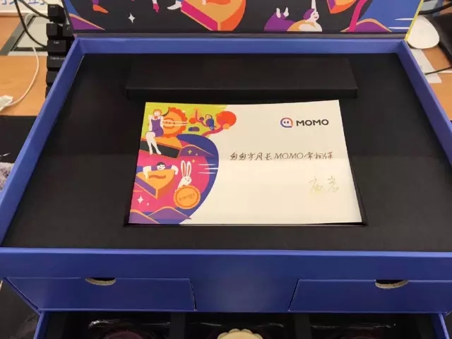 要是想吃現成的,下層抽屜里也有六枚印著陌陌logo的小月餅??梢哉f是非常貼心了。