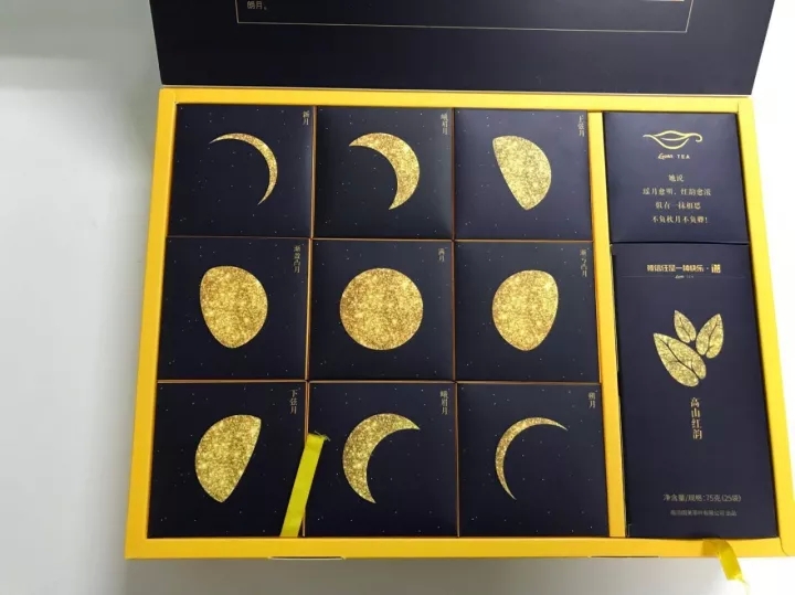 黑紅白的配色挺符合潮酷的定位,月餅盒上的設計用了自家logo和月相的變化過程。