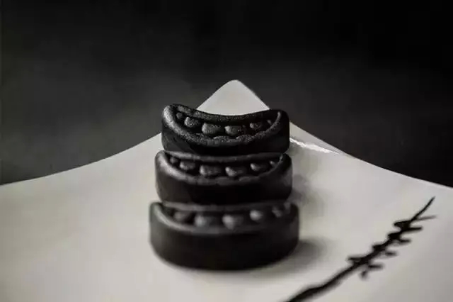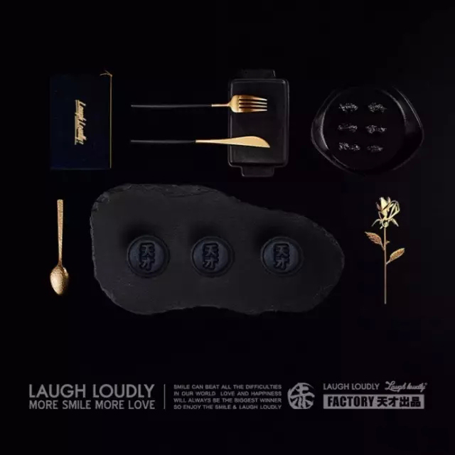在全部都是圓形的月餅當中,獨創半月形的黑色月餅。別人圓形象征團圓,于是KARMA也給自己的半月形月餅想了個點:微笑月餅。