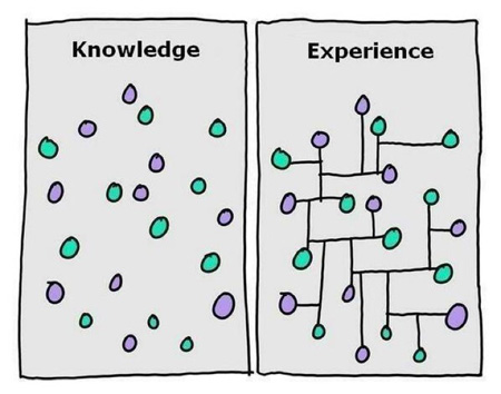 某天 Belle Beth Cooper 透過部落格 buffer 的官方帳號在 Twitter 上分享這張圖片時(shí),很快地就有超過 1,000 次以上的轉(zhuǎn)推,代表這相當(dāng)能引起大眾的共鳴,也讓她開始思考該如何將知識連結(jié)。這張圖片清楚地點(diǎn)出知識與經(jīng)驗(yàn)的不同: