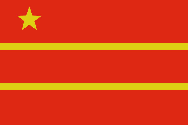 這幅就是當年差點打敗五星紅旗的另一個國旗方案,也是毛澤東開始比較中意的國旗樣式。 中間的橫杠代表黃河。但是由于黃杠切紅地,有分裂的即視感,所以受到張治中的反對,陳嘉庚也持類似意見,后來毛澤東采納該建議,轉而支持五星紅旗。