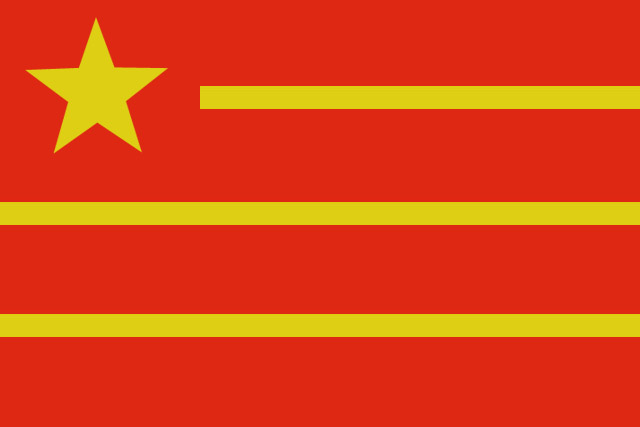 這款國旗樣式很明顯是受了民國“青天白日滿地紅”國旗的影響,把左上角的青天白日改成青天紅星。很明顯,這是一面不講政治的國旗方案,所以很快被否了。