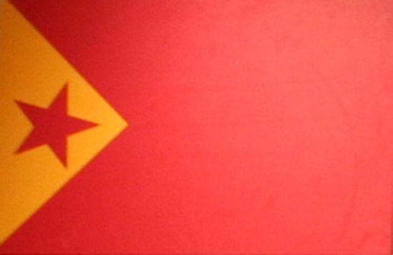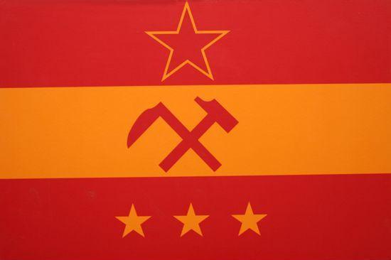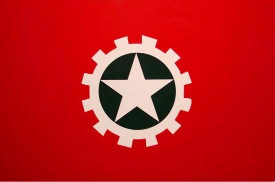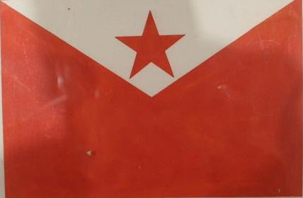 這面國旗跟上面那面最大的不同,就是多了麥穗和三顆星星,不過,這面國旗的命運跟上面一個一樣,當場被斃掉。