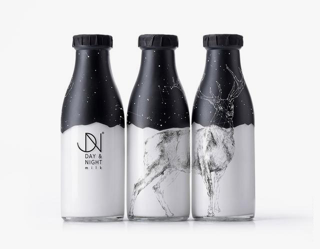 各種牛奶瓶、水杯、啤酒瓶都是黑白雙煞,整套拼合起來便是一副完整的畫面。
