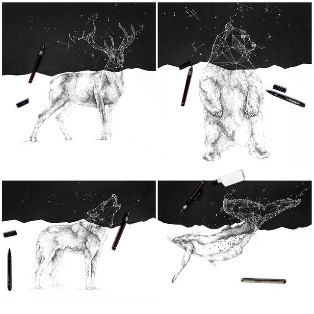 全手繪菜單,黑白可分截翻閱,拼合起來則是各種不同的動物形象,細節之處也是一點點描上去的非常到位~
